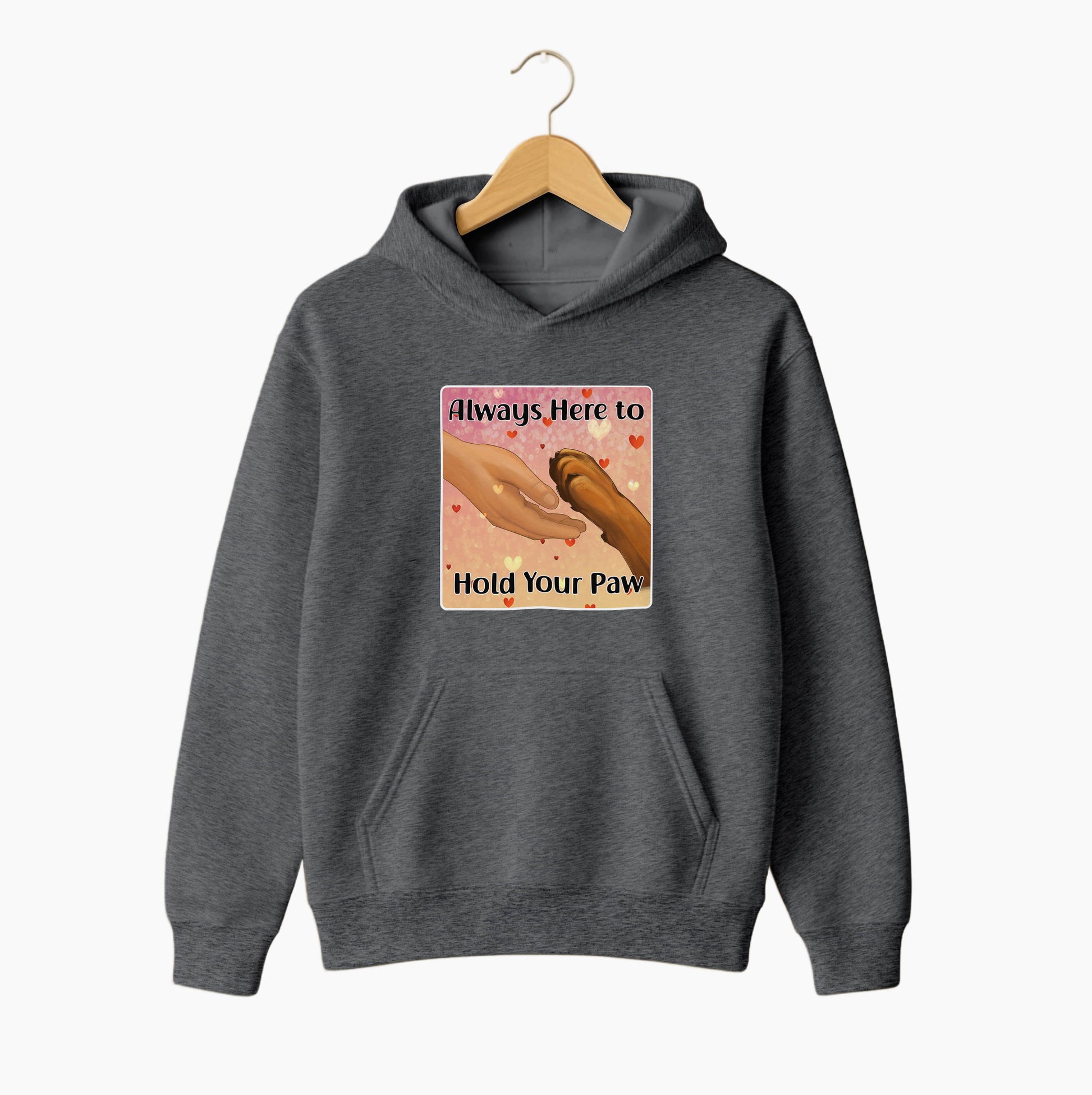 A warm and comforting hoodie designed for dog lovers who cherish the deep emotional connection with their furry friend. This heartfelt illustration features a tender moment of a human hand holding a loyal dog’s paw, surrounded by soft hearts. Perfect as a thoughtful gift or a comforting reminder of love and loyalty. Printed on the durable, cozy Gildan 18500 Heavy Blend.