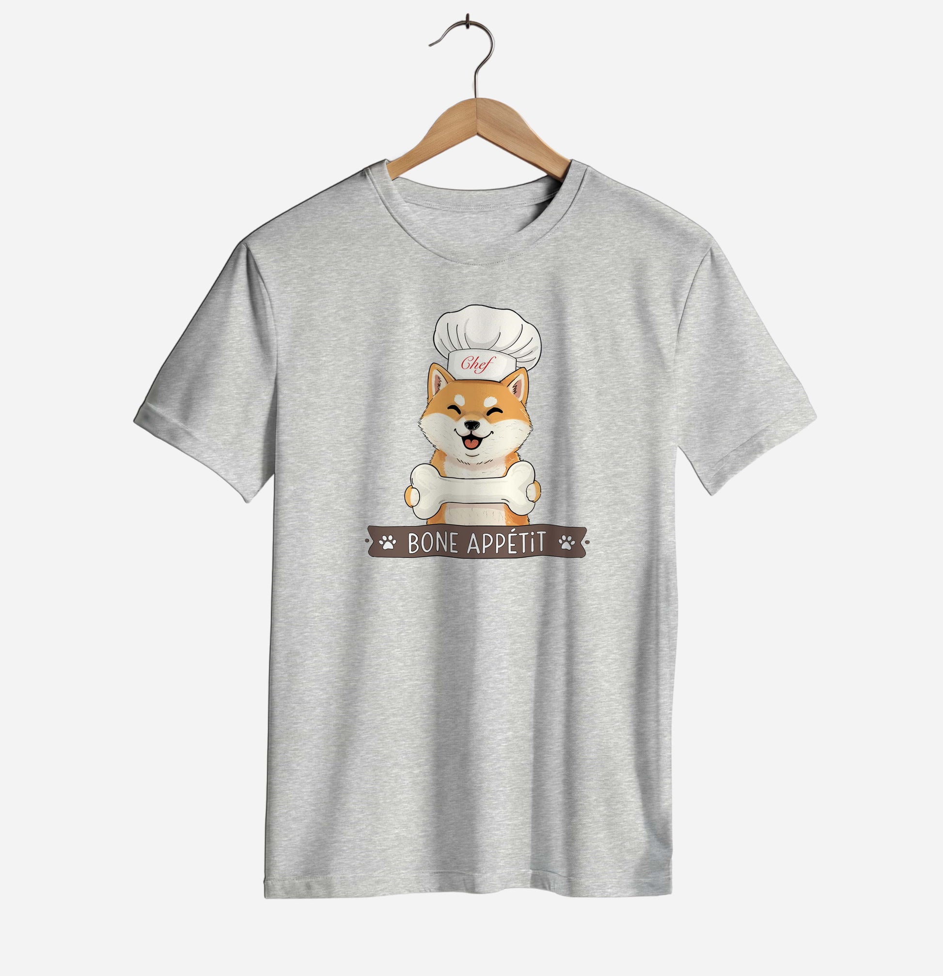This unisex T-shirt features a cheerful chef dog holding a bone with the playful “Bone Appétit” slogan, perfect for dog lovers with a sense of humor and a love for good food vibes. Soft, breathable, and easy to style, this T-shirt is ideal for casual days, gifting, or anyone who believes dogs make life (and meals) better.