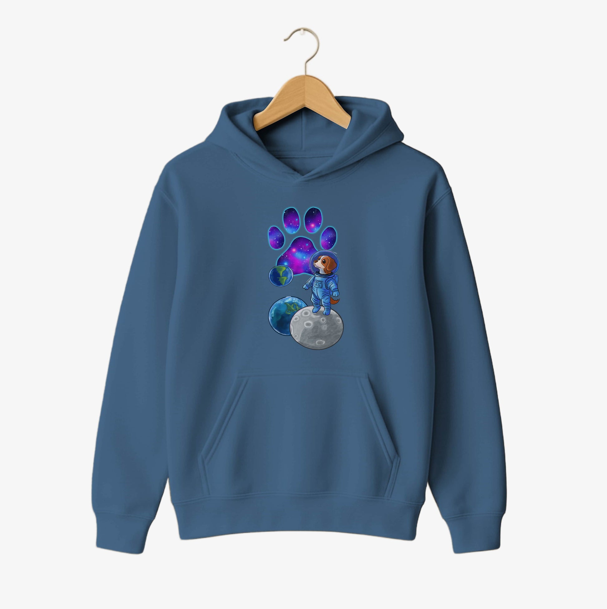 This unisex hoodie showcases a charming astronaut dog standing on the moon with planets and a vibrant galaxy paw print behind him. Warm, colourful and full of imaginative detail, it’s the perfect hoodie for dog lovers who enjoy whimsical cosmic themes and unique artwork with personality.