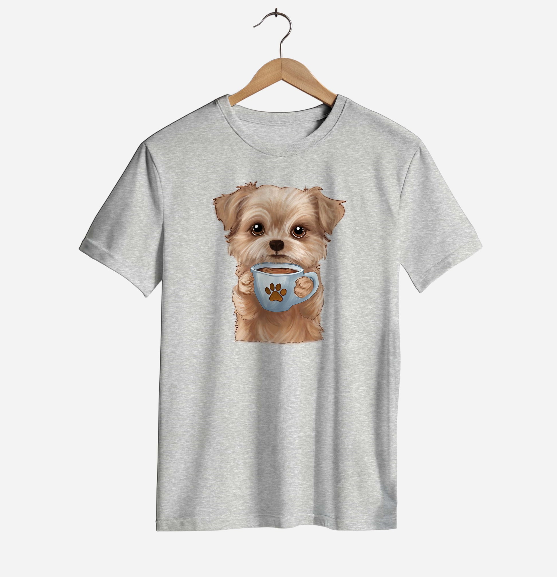 A heart-melting illustration of an adorable puppy holding a warm cup decorated with a paw print. Soft, cozy and irresistibly cute — perfect for dog lovers, coffee lovers, and anyone who enjoys gentle, feel-good designs that brighten the day.