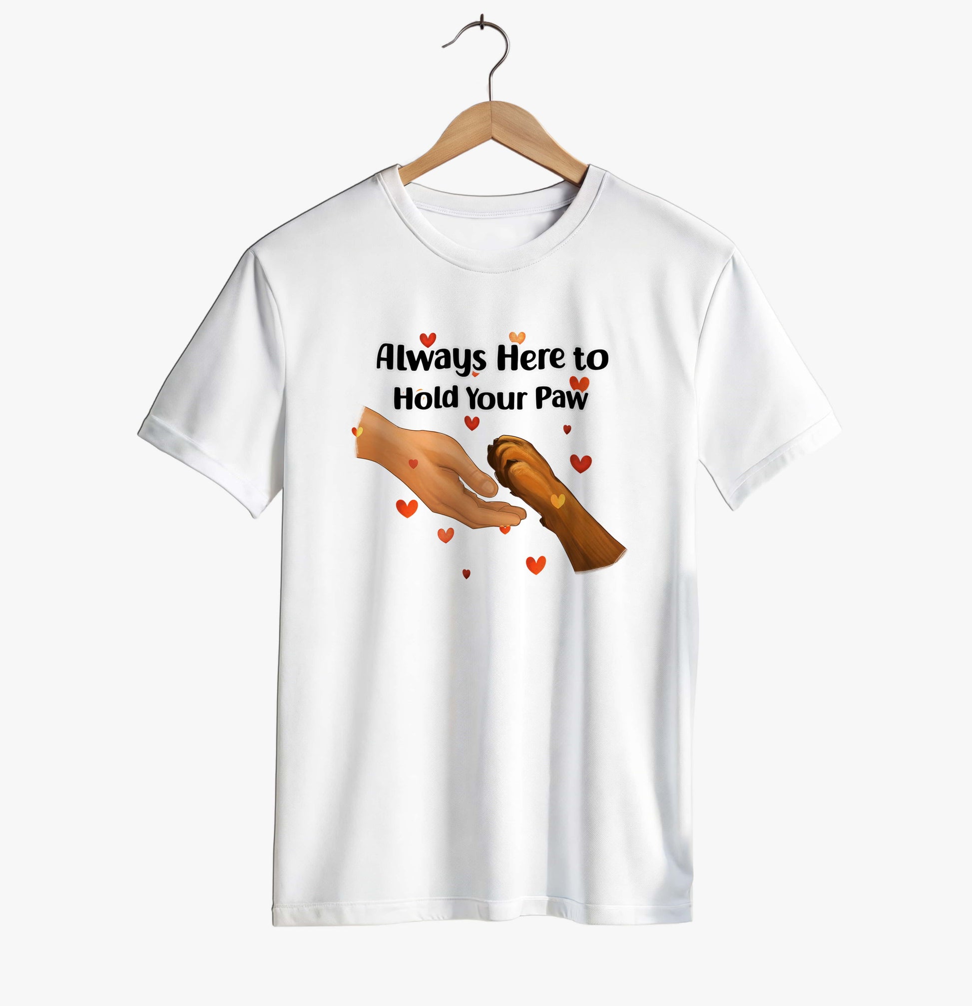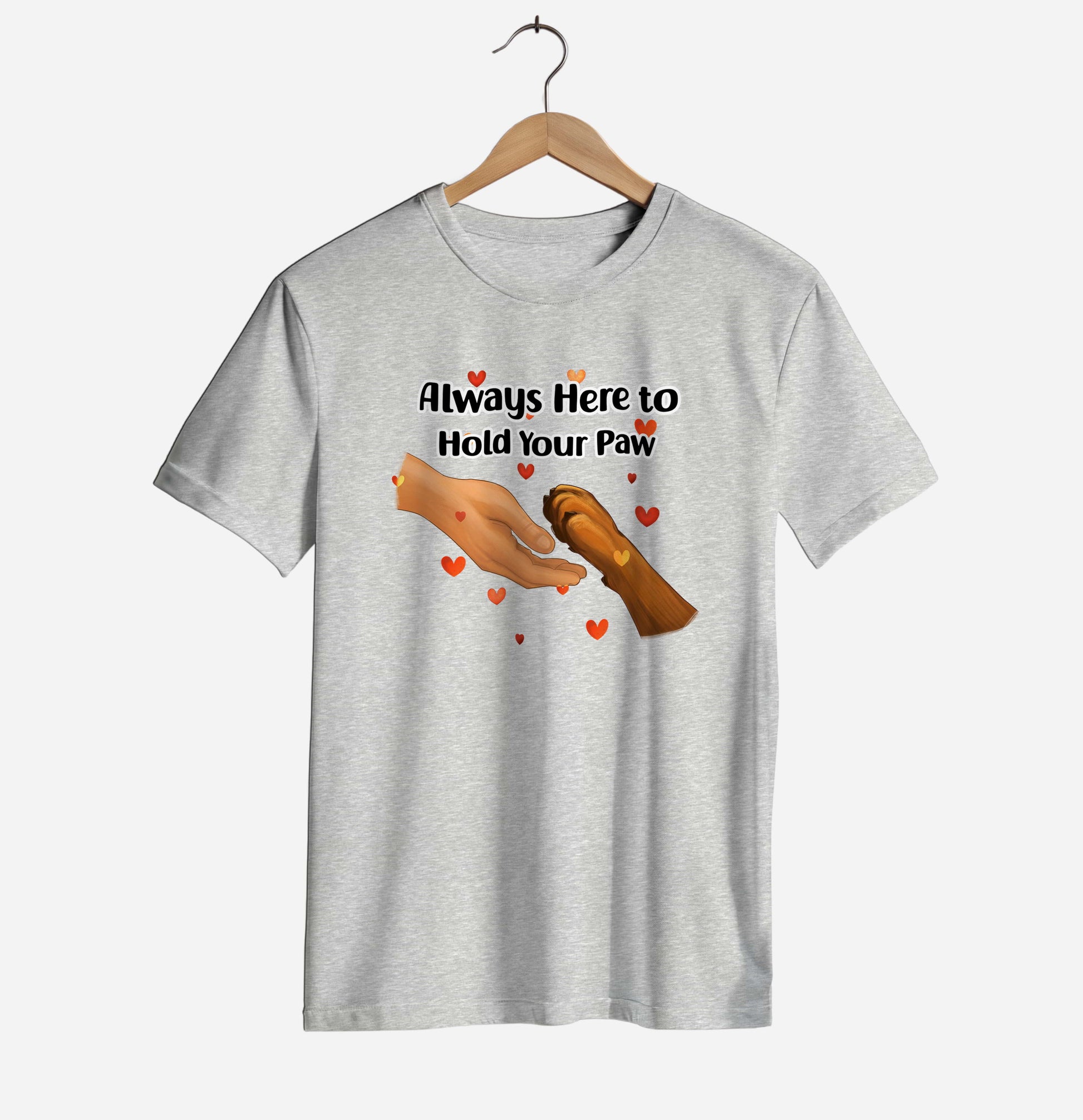 A clean, minimalist design showing a tender moment between a human hand and a loving dog’s paw. Perfect for everyday wear, this simple and elegant tee brings warmth without overwhelming details. Ideal for dog lovers who appreciate subtle, meaningful designs. Printed on the soft and high-quality Bella+Canvas 3001.