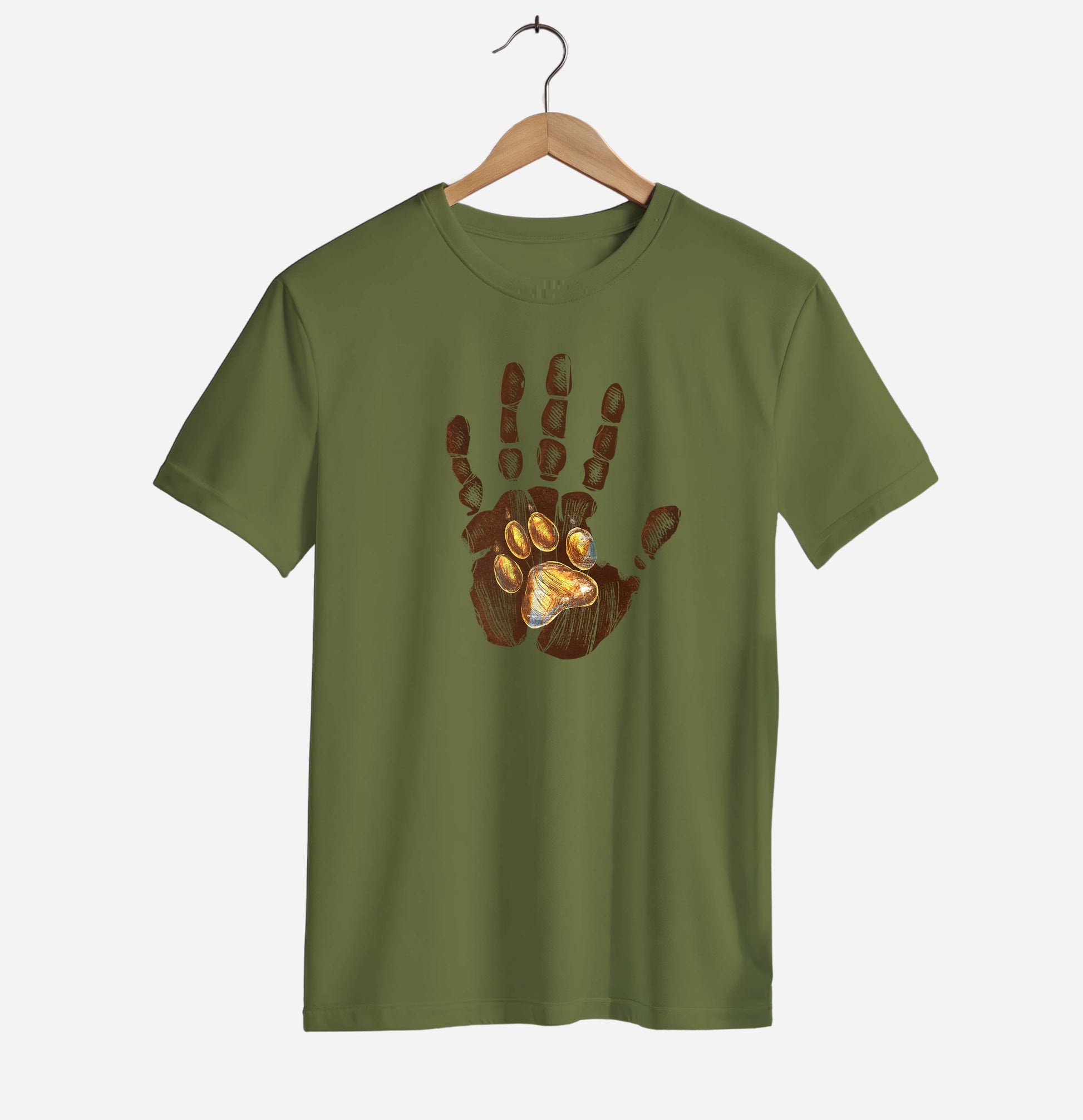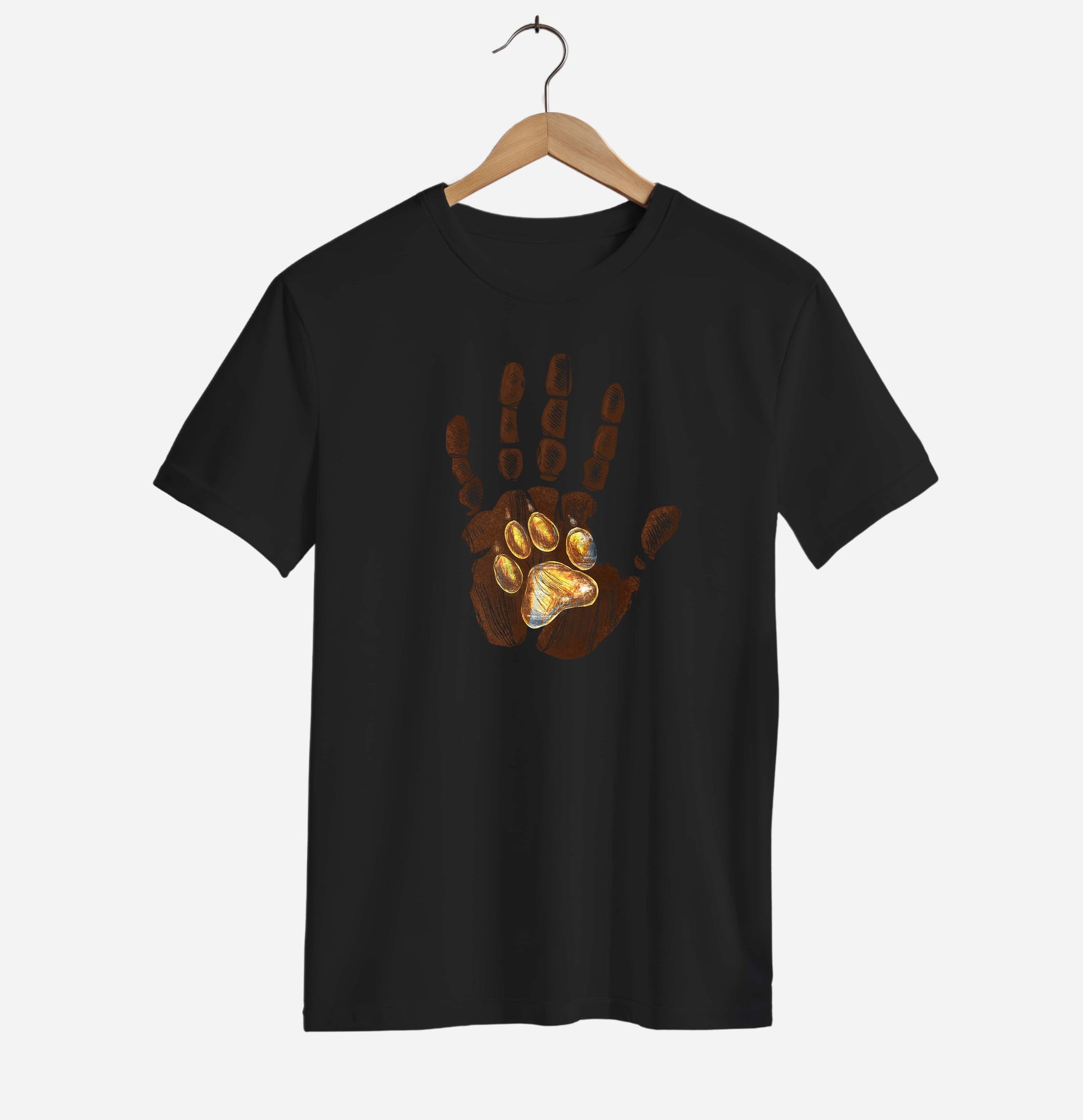 This unisex T-shirt features a powerful yet simple symbol: a human hand holding a dog paw. A quiet statement about trust, connection, and unconditional bond between people and dogs.