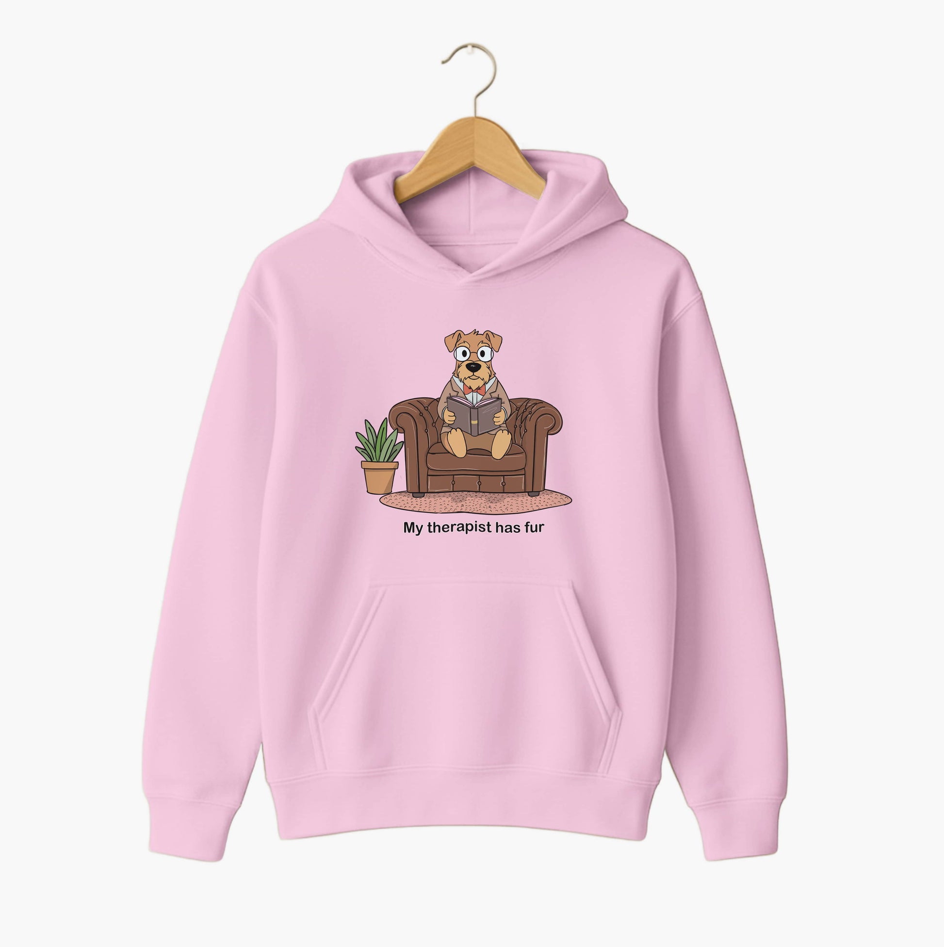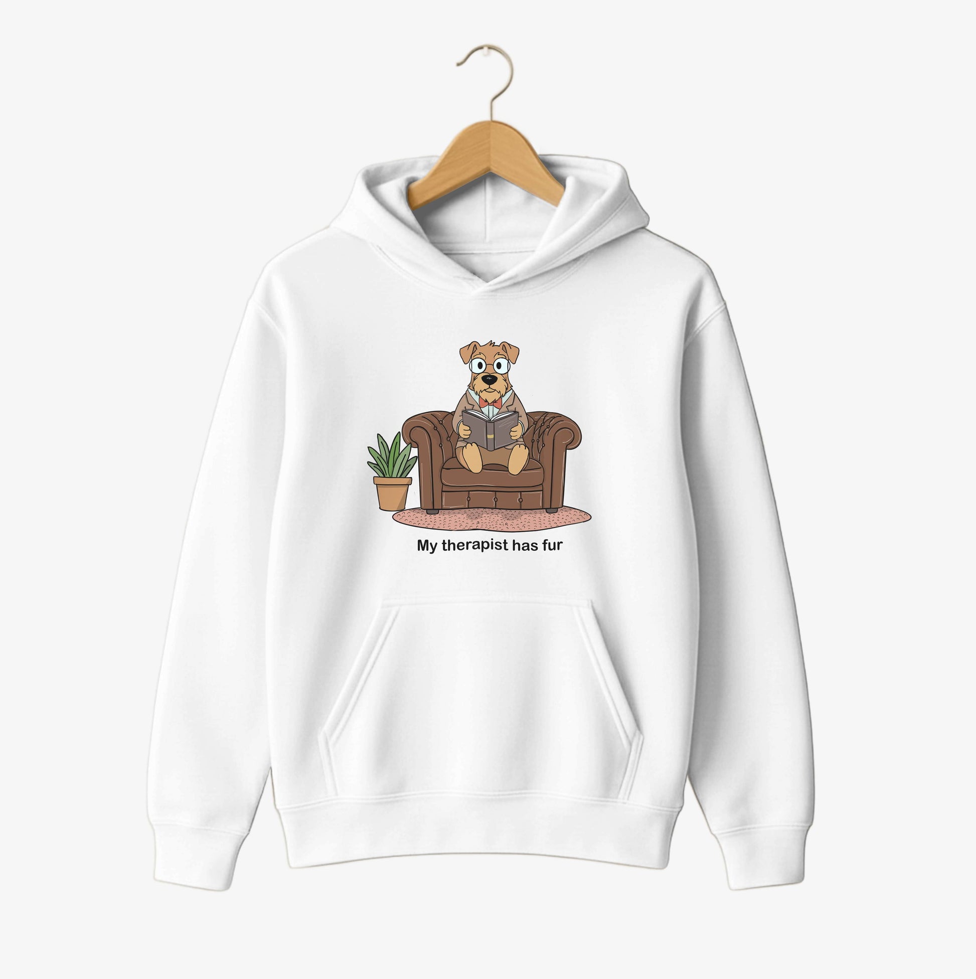 This unisex hoodie combines cozy comfort with clever humor. Featuring a relaxed dog reading in an armchair and the phrase “My therapist has fur”, it’s a lighthearted reminder that dogs often provide the best kind of therapy. Ideal for dog lovers who appreciate warmth, wit, and everyday positivity.