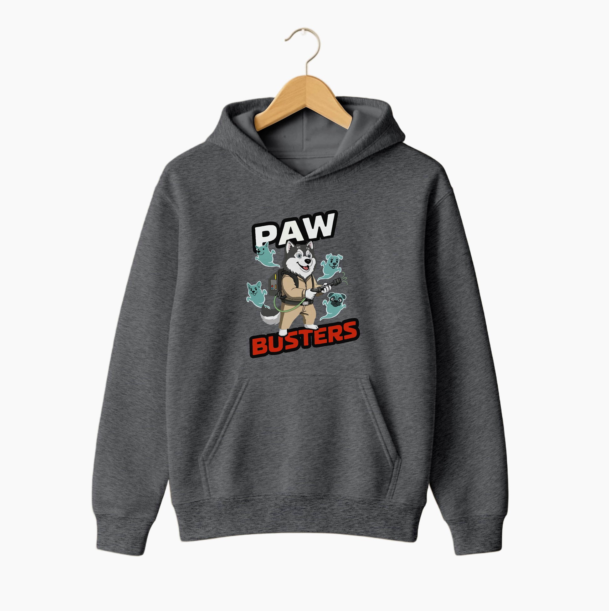 This unisex hoodie showcases the fun “Paw Busters” ghost-hunting dog design, combining cozy comfort with bold cartoon character style. Ideal for dog lovers who enjoy playful humor and eye-catching streetwear, this hoodie is perfect for cooler days, relaxed weekends, or unique gifting.