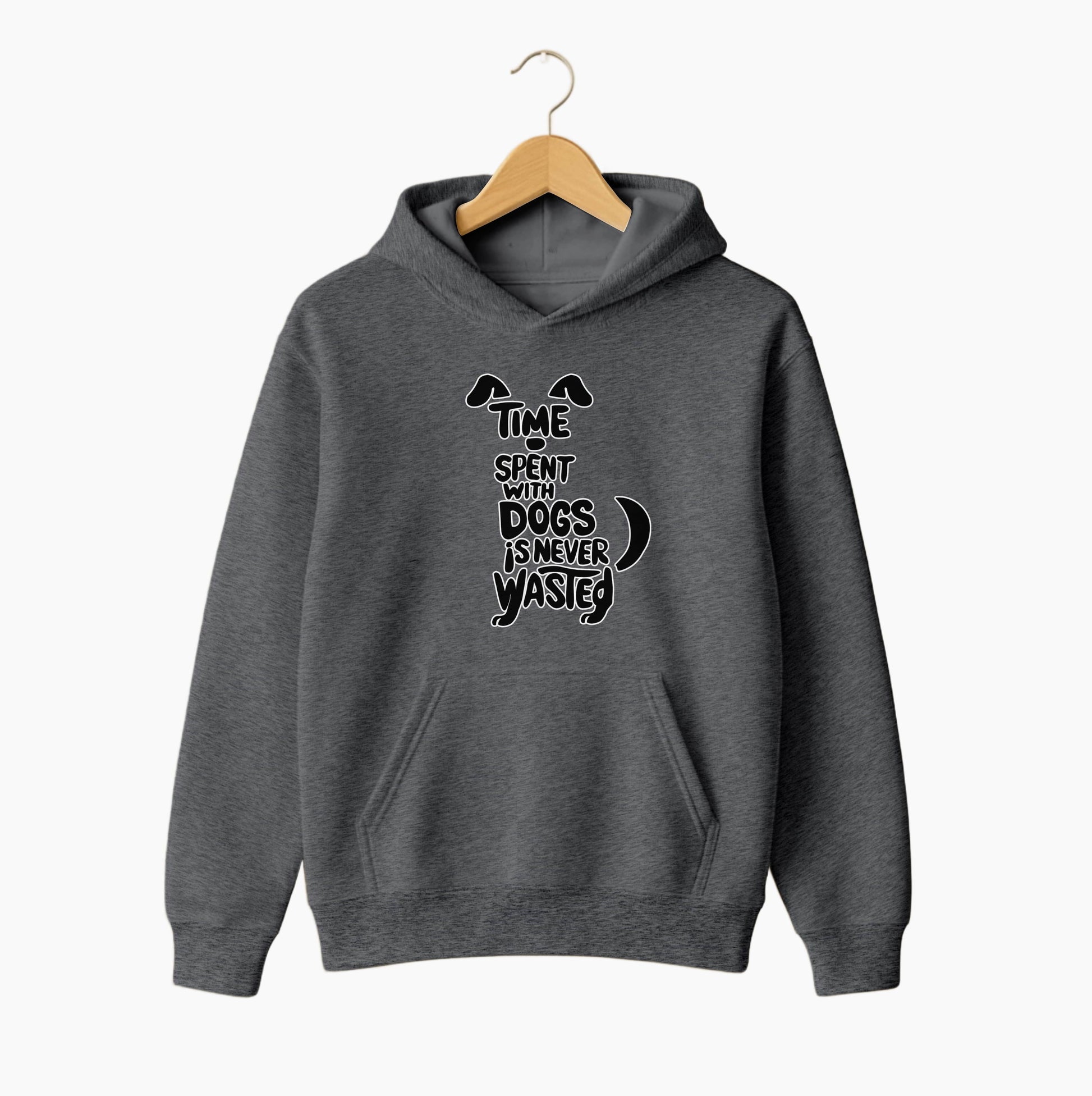 This unisex hoodie showcases the heartwarming phrase “Time Spent With Dogs Is Never Wasted,” displayed in a clean, minimalist style with simple dog-inspired accents. Printed on the warm and durable Gildan 18500, it’s perfect for dog lovers who enjoy meaningful, simple, and cozy apparel.
