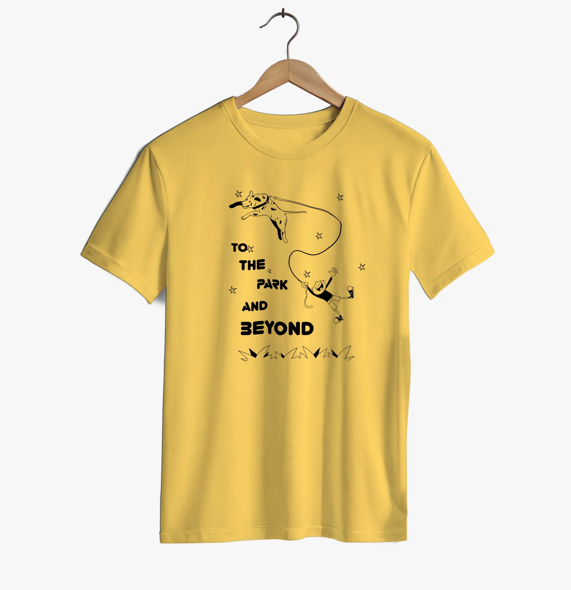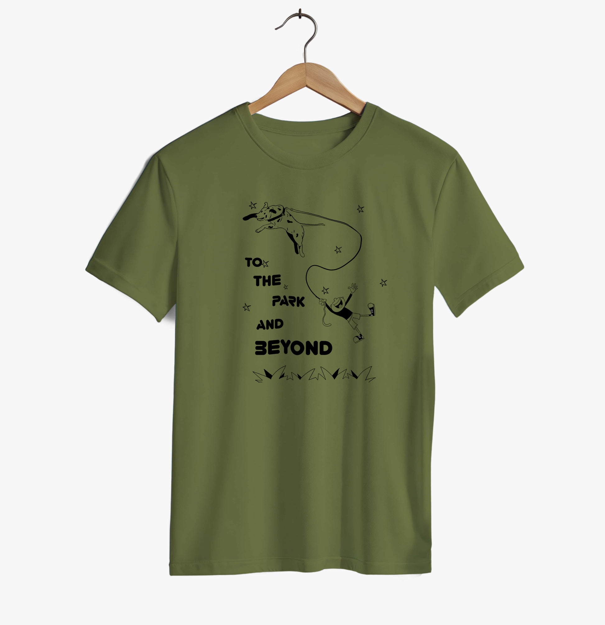 This unisex T-shirt celebrates the unstoppable energy of dogs who always want to go one step further — from the park to wherever adventure leads next. Featuring a playful illustration of a dog joyfully pulling its human through space, this design perfectly captures the humor, love, and chaos that come with life alongside a dog. Soft, expressive, and full of movement, it’s a feel-good piece made for dog lovers who know that every walk can turn into an adventure.